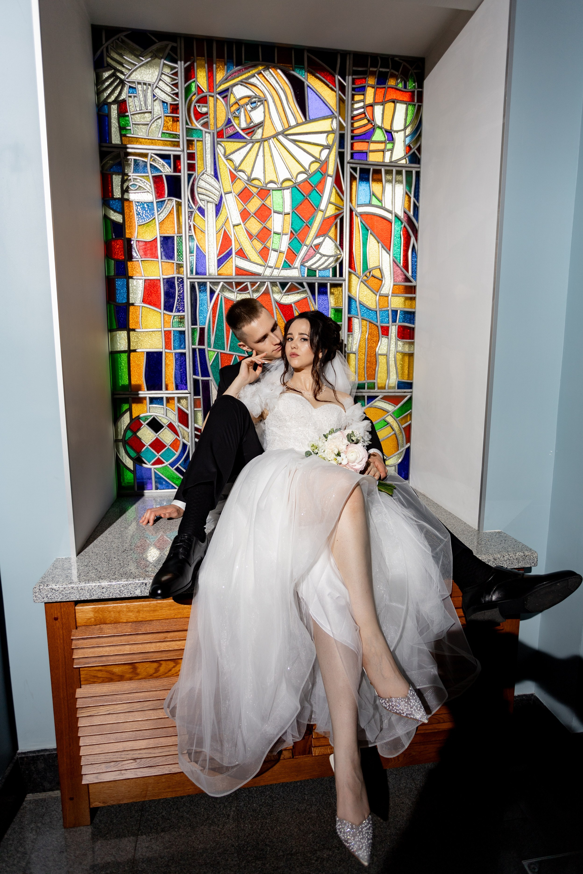 На случай непогоды я предлагаю молодоженам провести фотосессию в светлой студии, Дом Культуры и прочие красивые закрытые помещения.